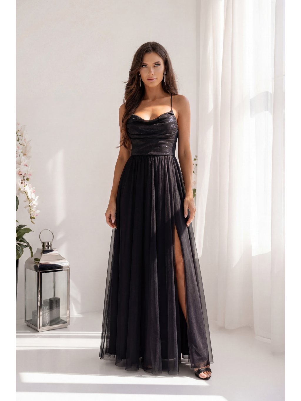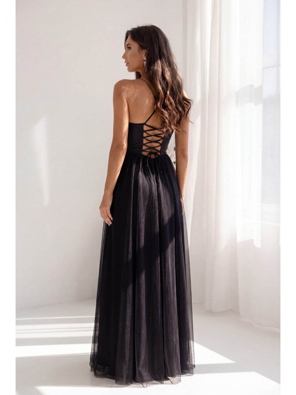 Černé dlouhé šaty s třpytivým topem a tylovou sukní RUBY
