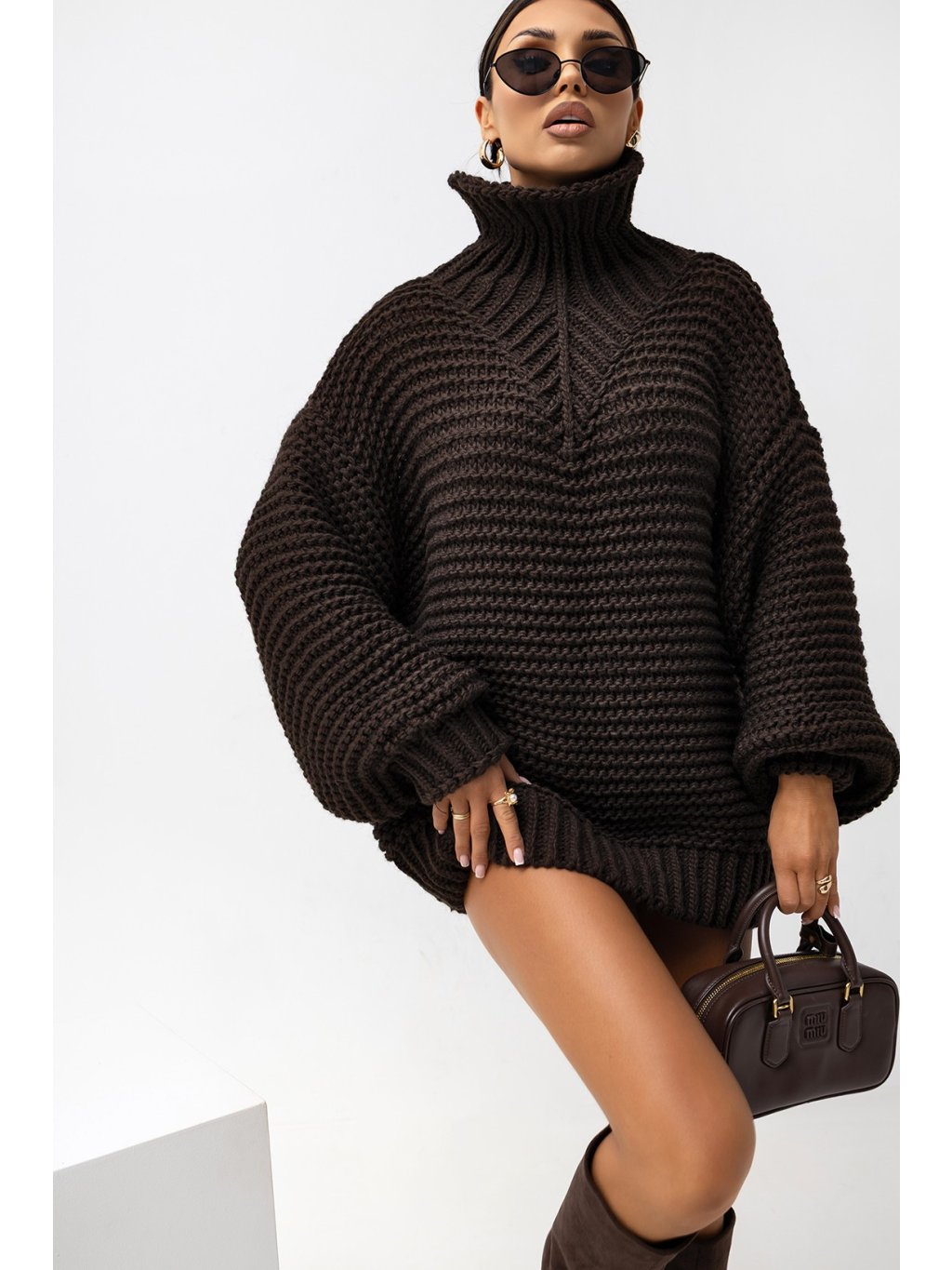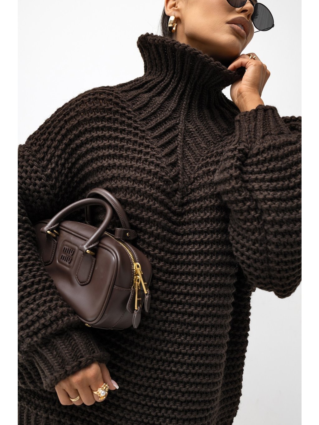 Oversize pletený rolákový svetr s širokými rukávy ISABELL – hnědá