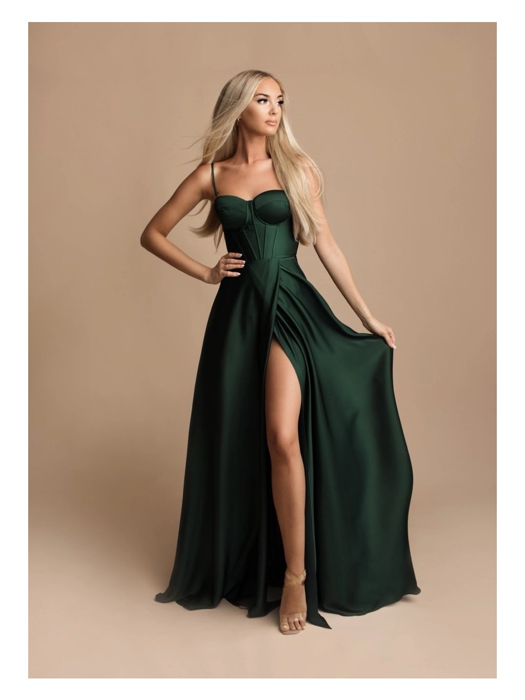 Šaty EMMA jsou ze saténu a působí velice čistě a minimalisticky. Korzet je vzadu na utažení, takže se dokáže krásně přizpůsobit postavě, sukně je rozevlátá a v přední části má rozparek. Ramínka jsou odepínací.