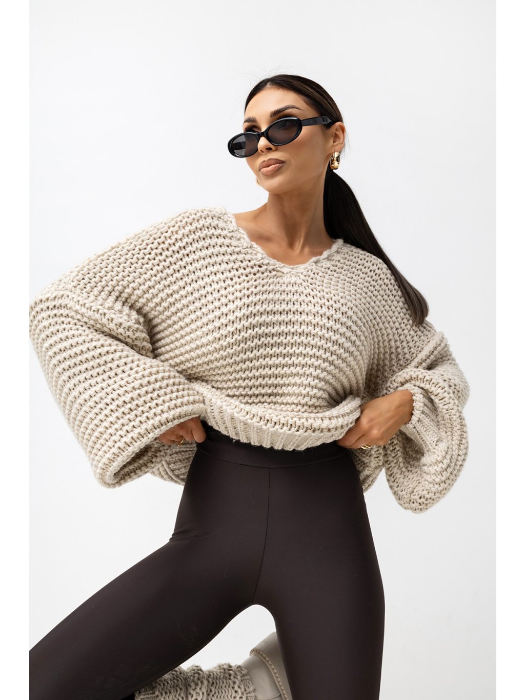 Svetr s širokými rukávy a V výstřihem MARGARET béžová