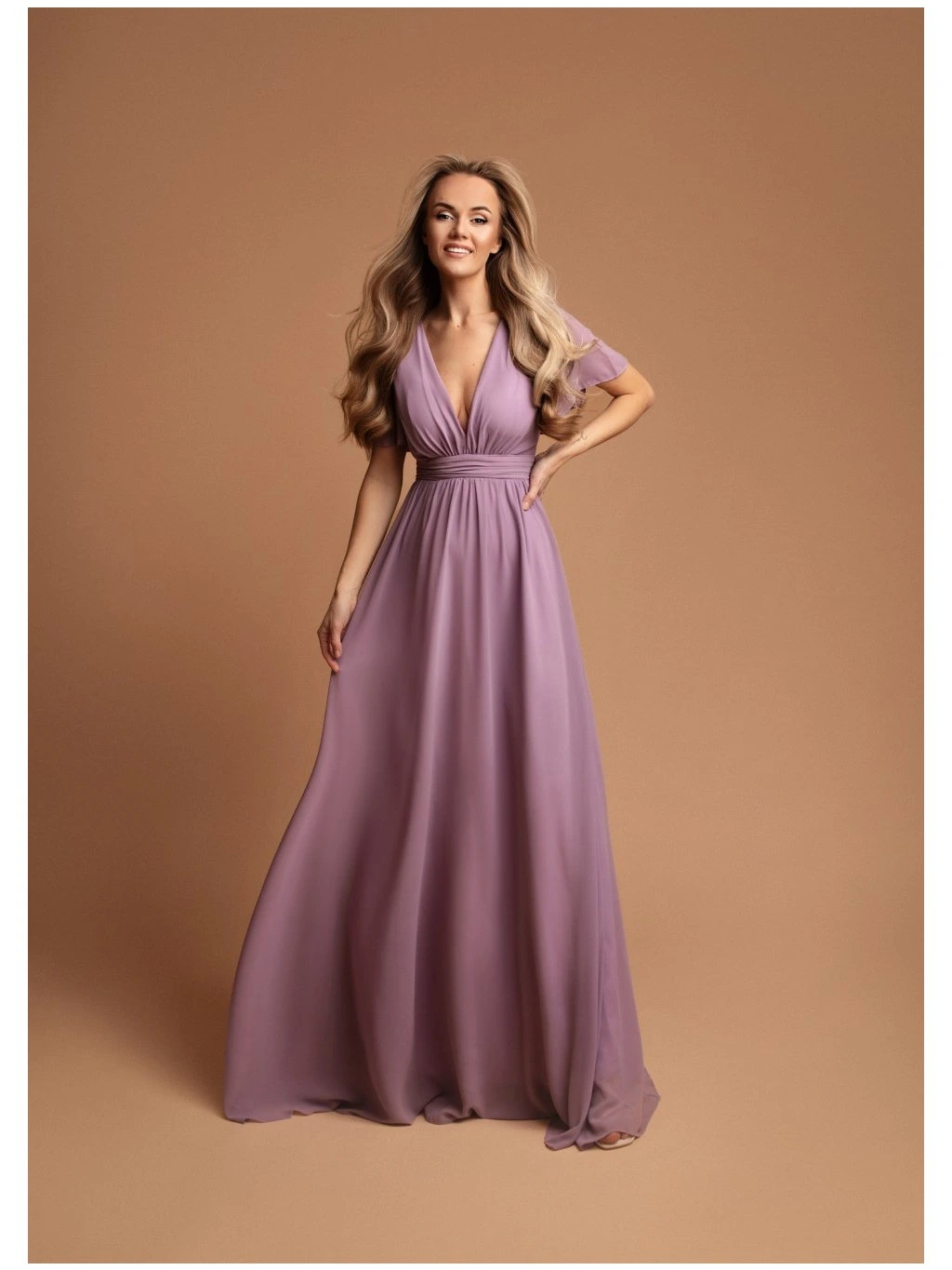 Fialkový odstín působí jemně a slavnostně, proto jsou tyto šaty oblíbené například jako šaty pro družičky, ale hodí se i jako plesové nebo společenské šaty na svatbu.